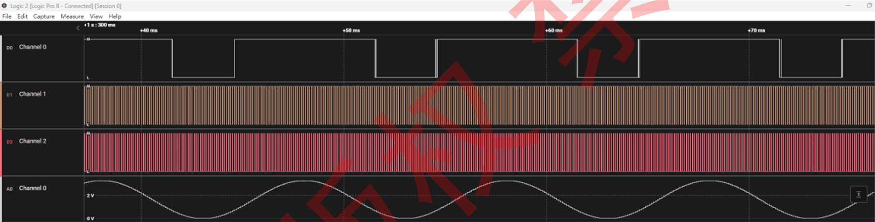 使用逻辑分析仪或者示波器链接逻辑分析仪,查看上传波形