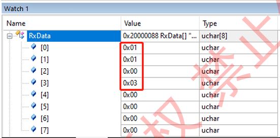 点击下发数据,可以在Keil的Debug中查看接受的数据