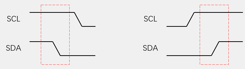 起始条件:SCL高电平期间,SDA从高电平切换到低电平