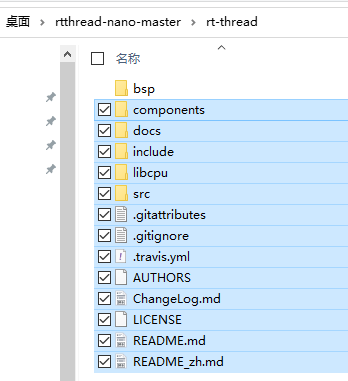 最后把RT-Thread中,除了bsp文件夹全部拷贝到裸机工程。
