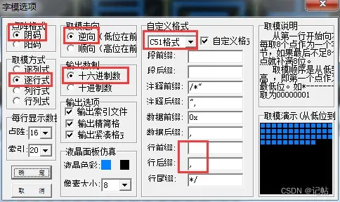 使用取模软件进行汉字字模生成,设置如下所示。