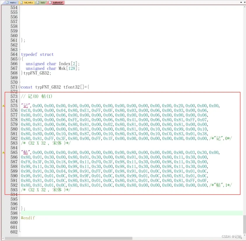 将字模复制到例程lcdfont.h文件夹 如下数组内