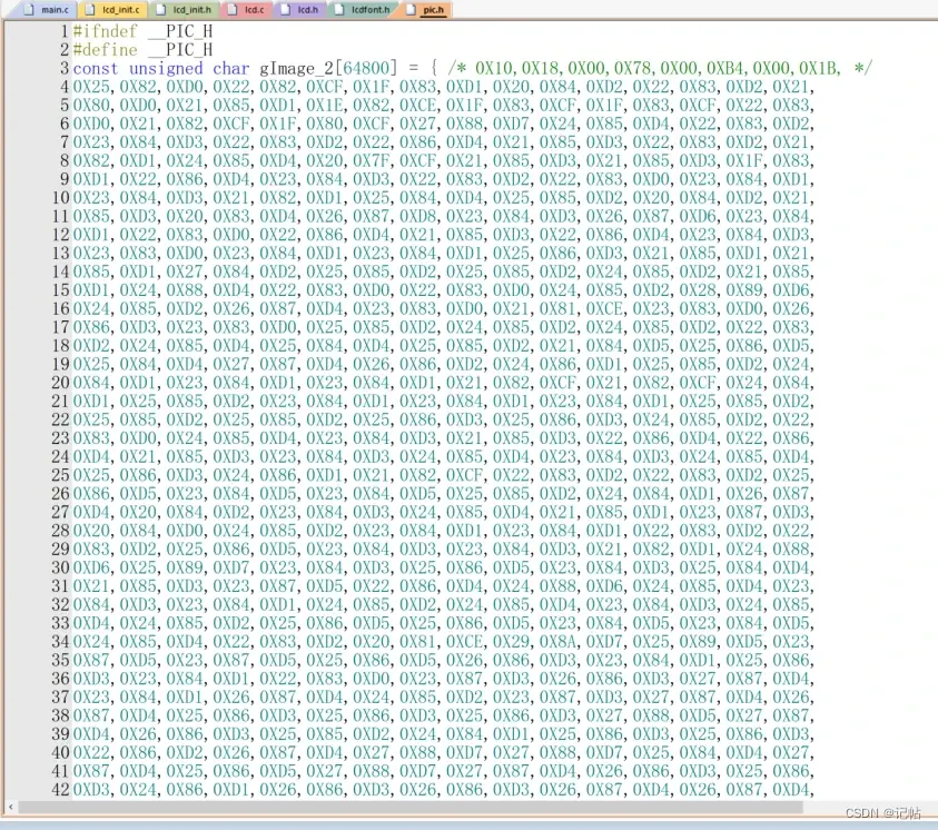 然后点击保存,然后将生成的数组复制到到例程pic.h文件内。