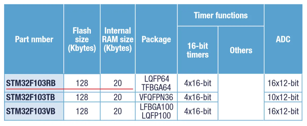 STM32F103RB内存大小