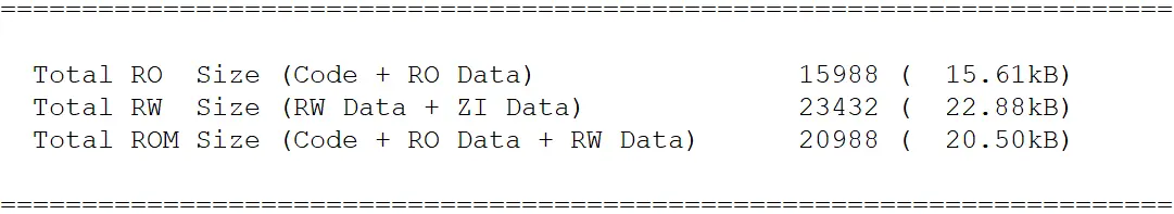 那么这个程序占用的SRAM存储器的空间大小是多少呢?程序固定占用RAM大小=RW data+ZI data。