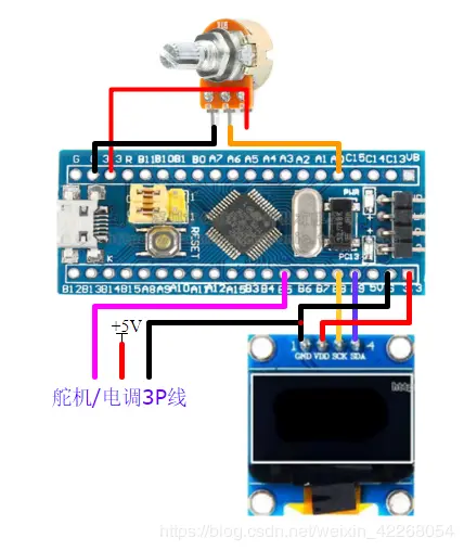 电位器:GND - PA0 - 3.3VOLED显示屏: GND 电源地 VCC 接3.3v电源 SCL 接PB8(SCL) SDA 接PB9(SDA)