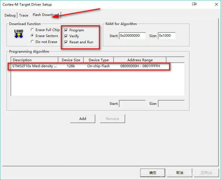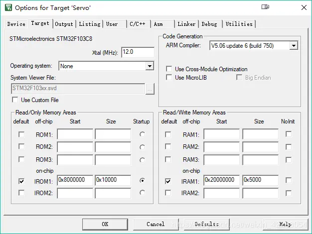 点击图标按钮3,打开Options for Target窗口,点击顶部菜单按钮切换子窗口,依次如下设置: