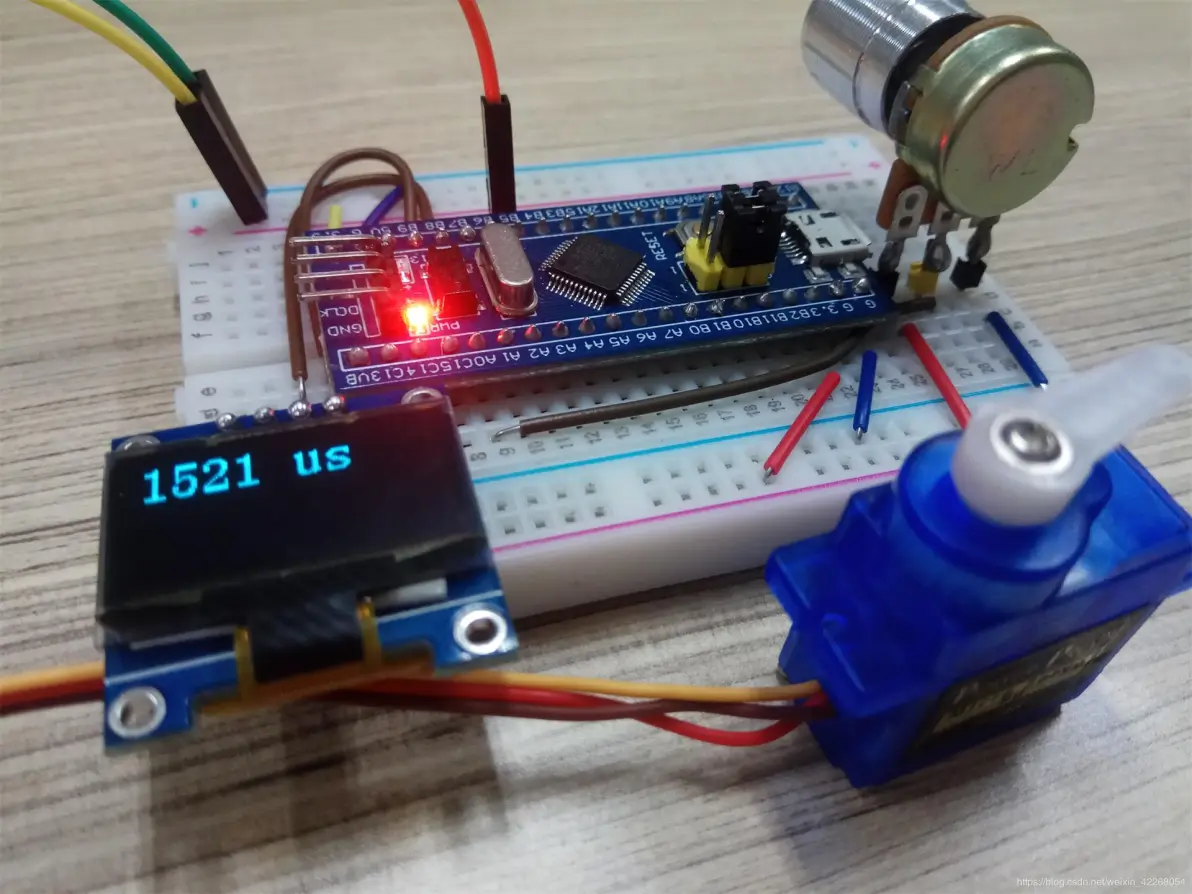 我们使用ADC1读取电位器的电压采样值,并从0~4095范围的采样值转换到1000~2000,赋值给PWM输出。