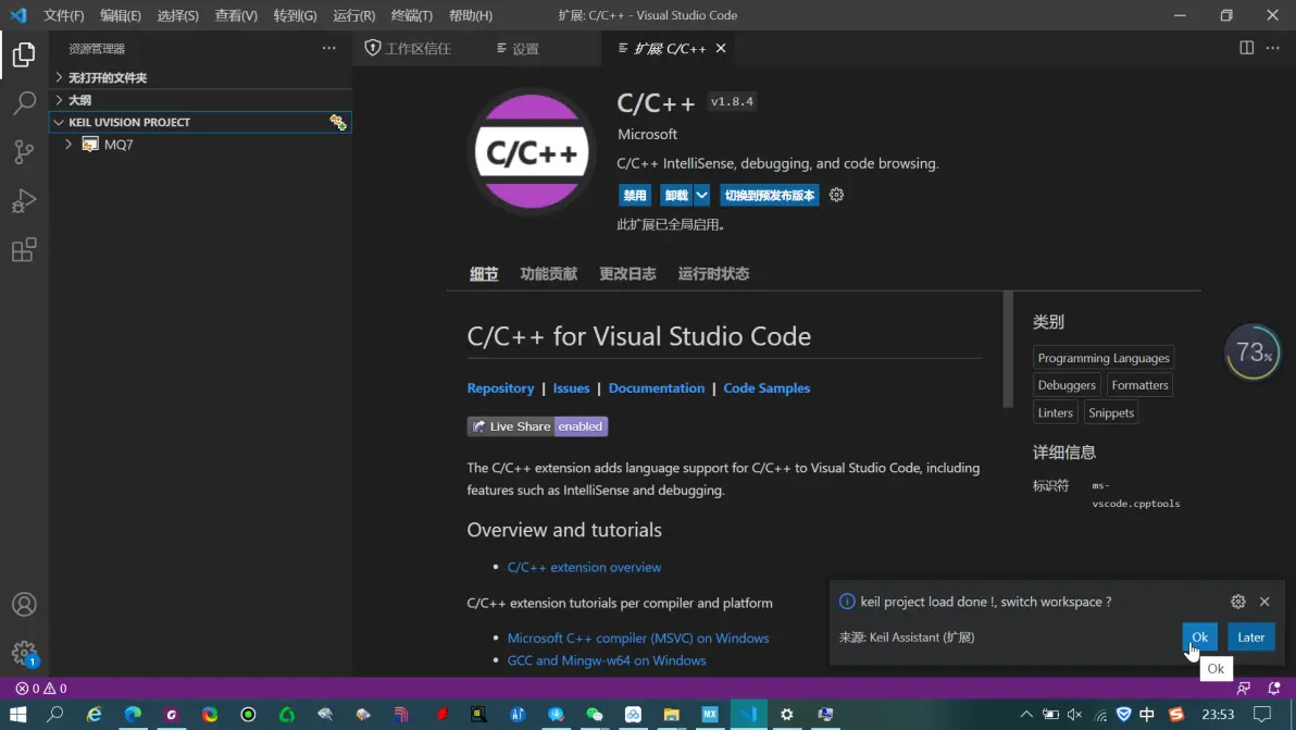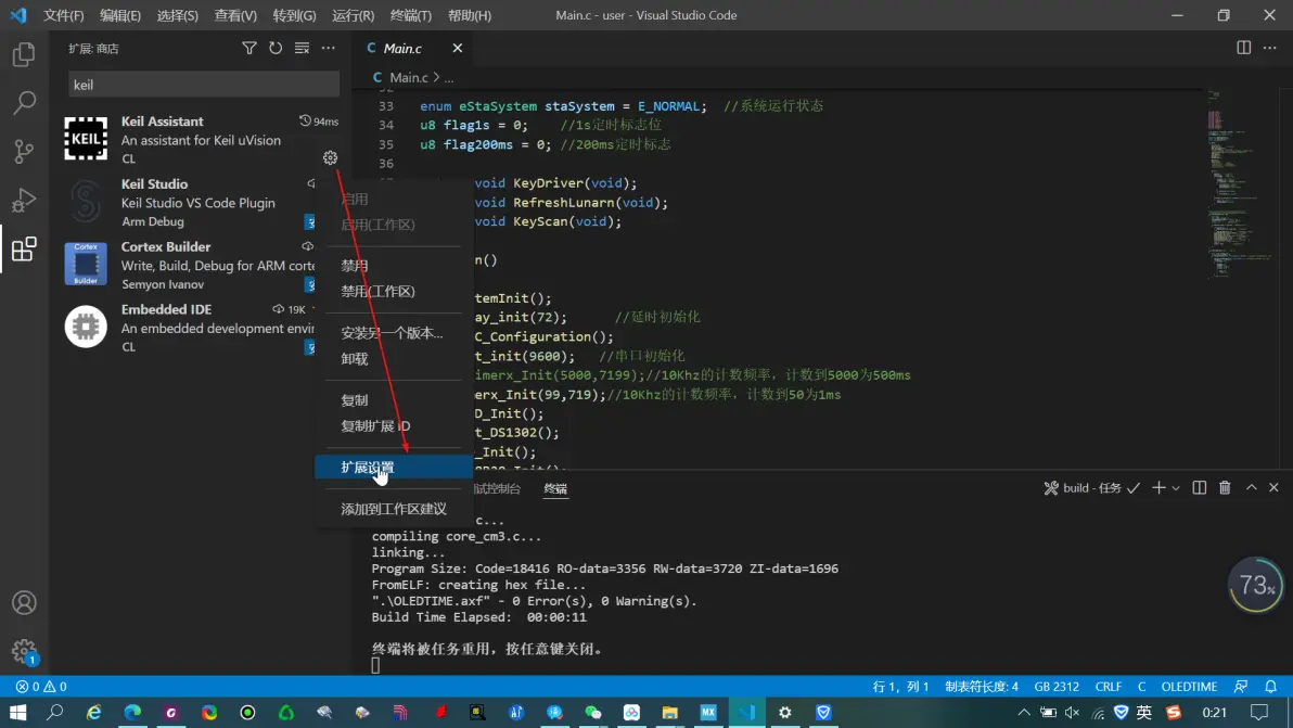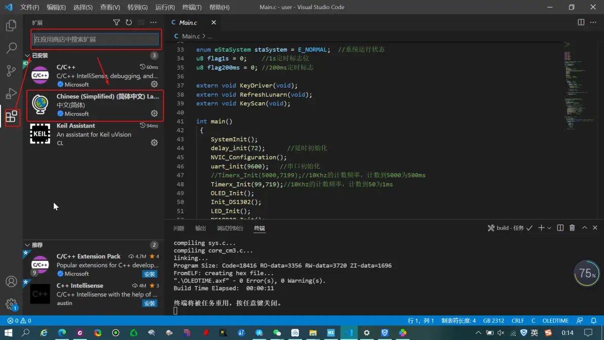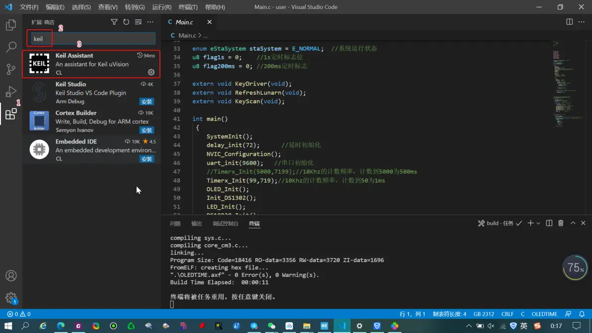 在拓展搜索栏中输入Keil,找到 Keil Assistant 点击安装下载
