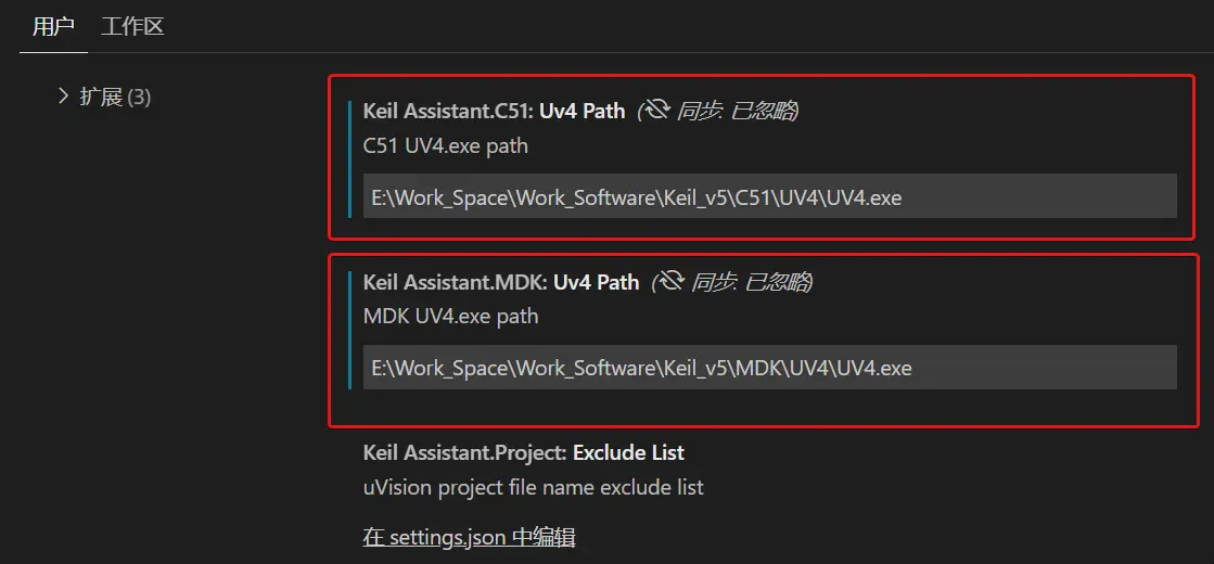因为我们是对STM32系列进行开发,使用的是Keil的MDK版本,因此需要在第二个文本框中输入Keil5程序的绝对路径,如下图所示: