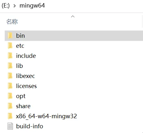 我将压缩包解压在了E盘,因此路径为 E:mingw64bin