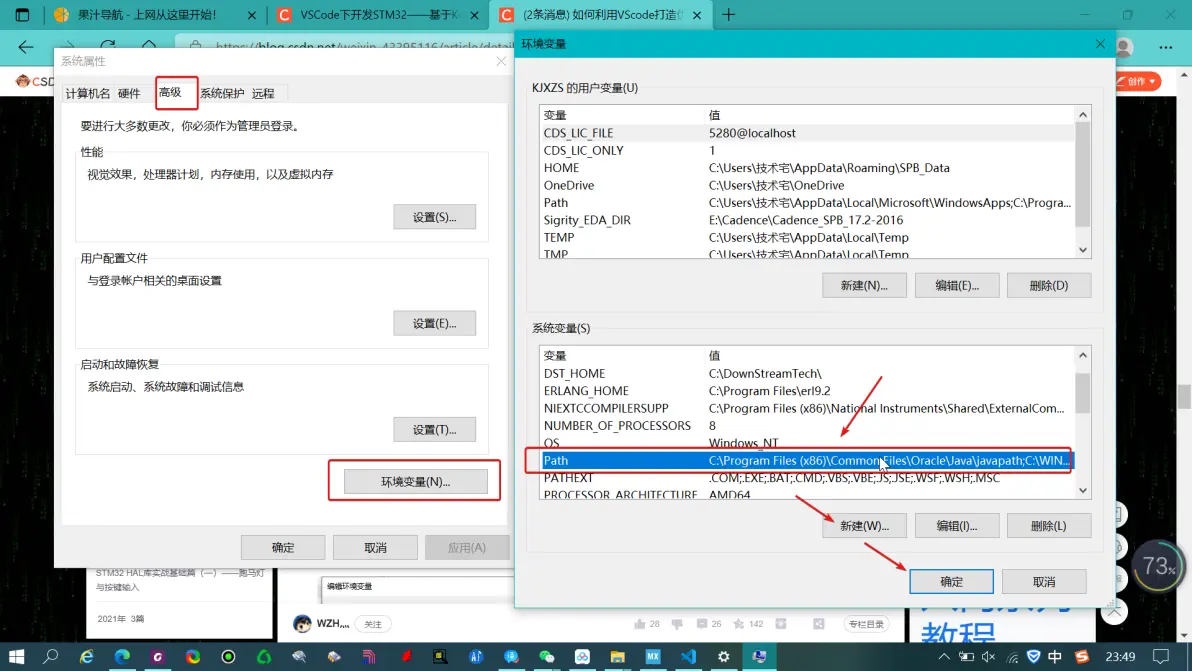 3、双击Path,点击新建,将复制的bin文件夹路径粘贴在其中,别忘了点击所有的确定!!!