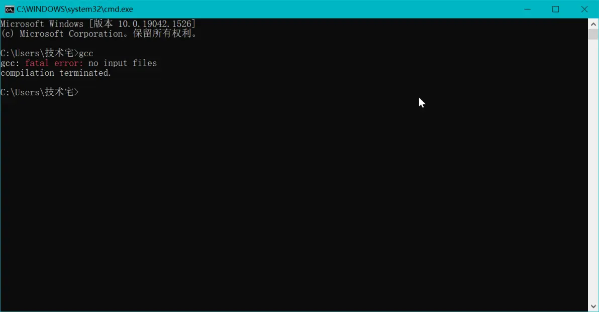 Win+R快捷键 输入 cmd 打开终端 输入 gcc 并回车