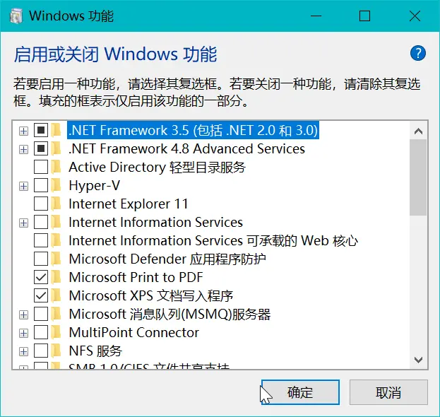 检查电脑是否安装 .NET 3.5 环境