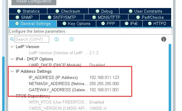 并在lwip文件中进行IP、子网掩码、网关的覆盖初始化。
