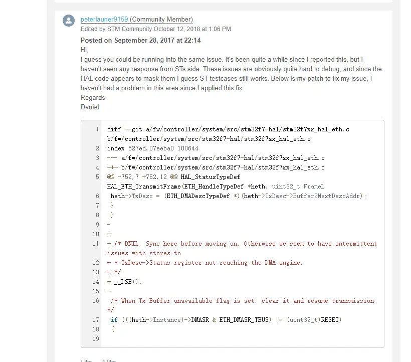 最后在ST官方看见一个17年的终于解决了不使用CPU Cache配置网口这个问题: