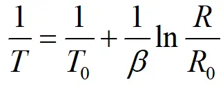 其中,R0为T0温度(单位:K)下的阻值,beta为常数,三个变量均由厂家给出。