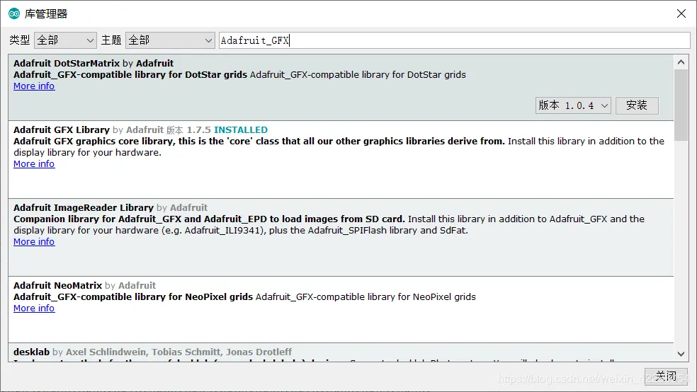 这里还需要下载Adafruit GFX和Adafruit SSD1306两个库。