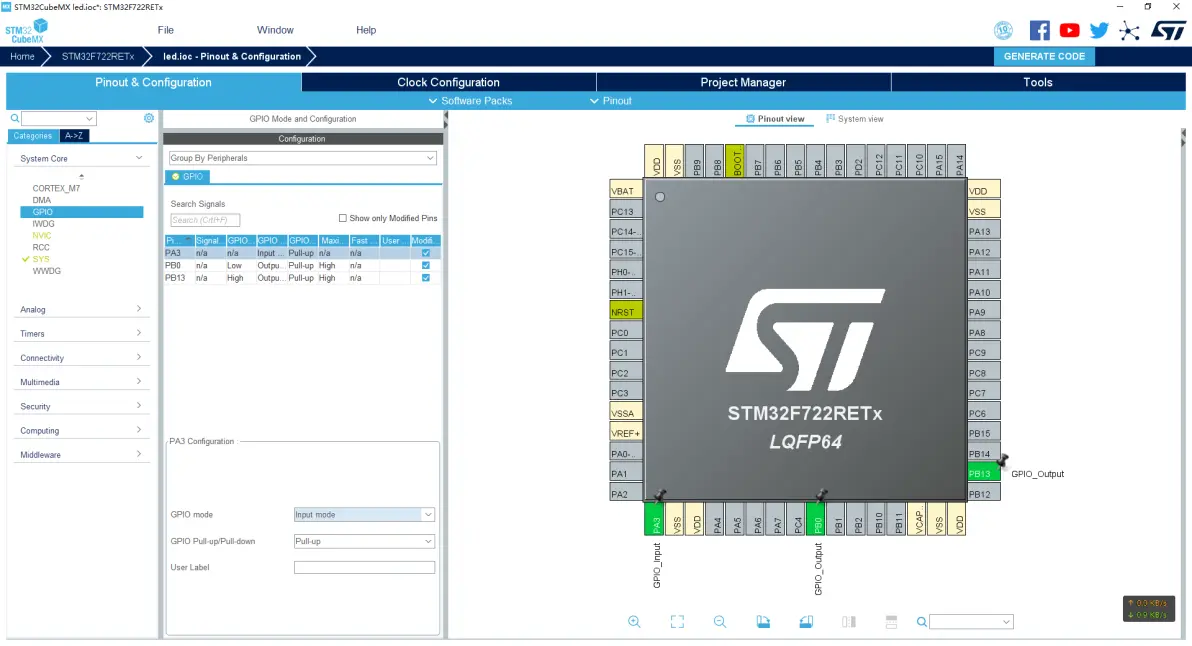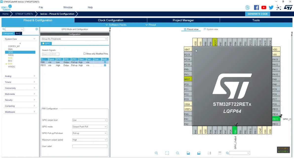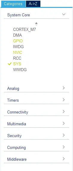 然后打开左侧的下拉框System Core,点击GPIO选项;
