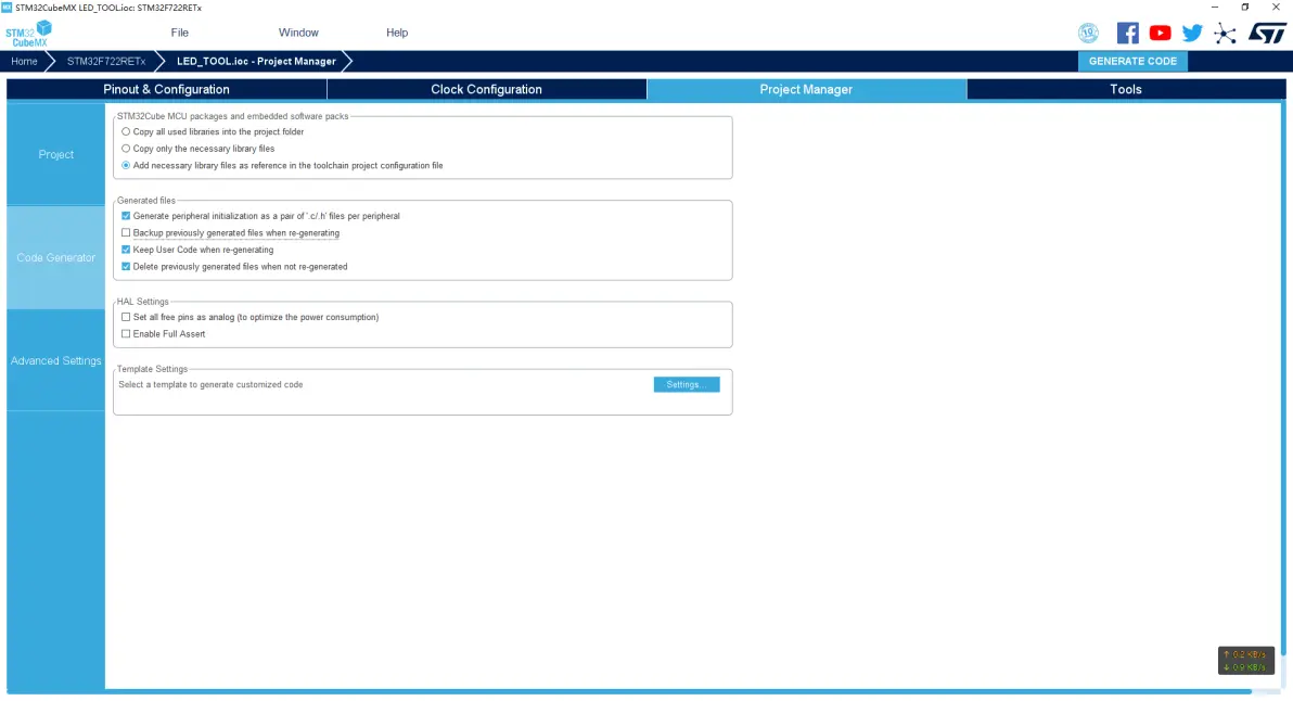 打开左侧Code Generater菜单勾选Generate peripheral initialization as a pair of'.c/.h'file per peripheral;