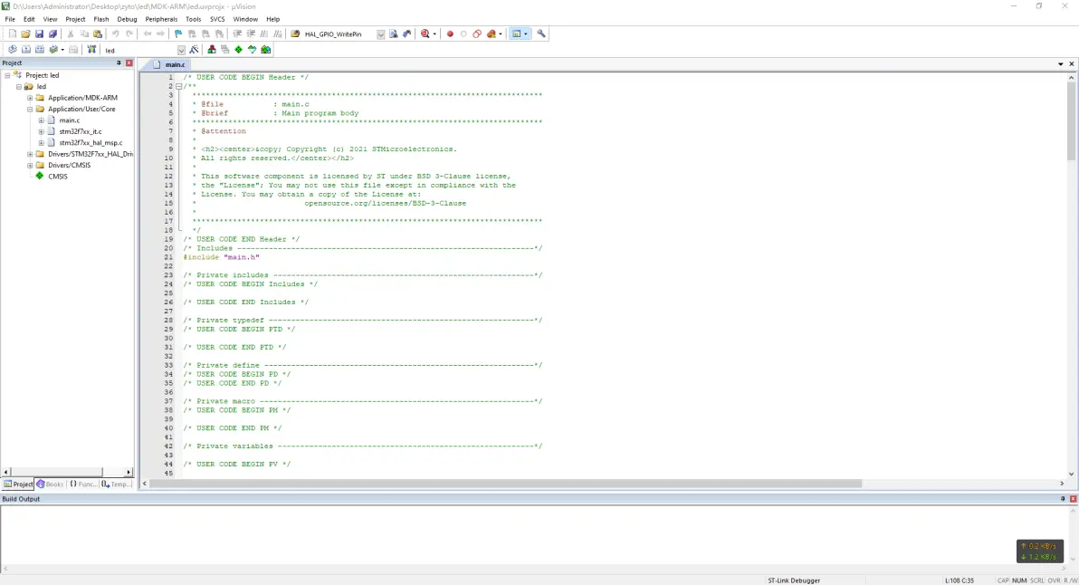 生成代码后打开工程文件夹,用Keil5打开工程。