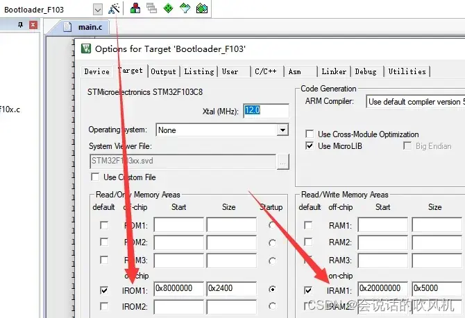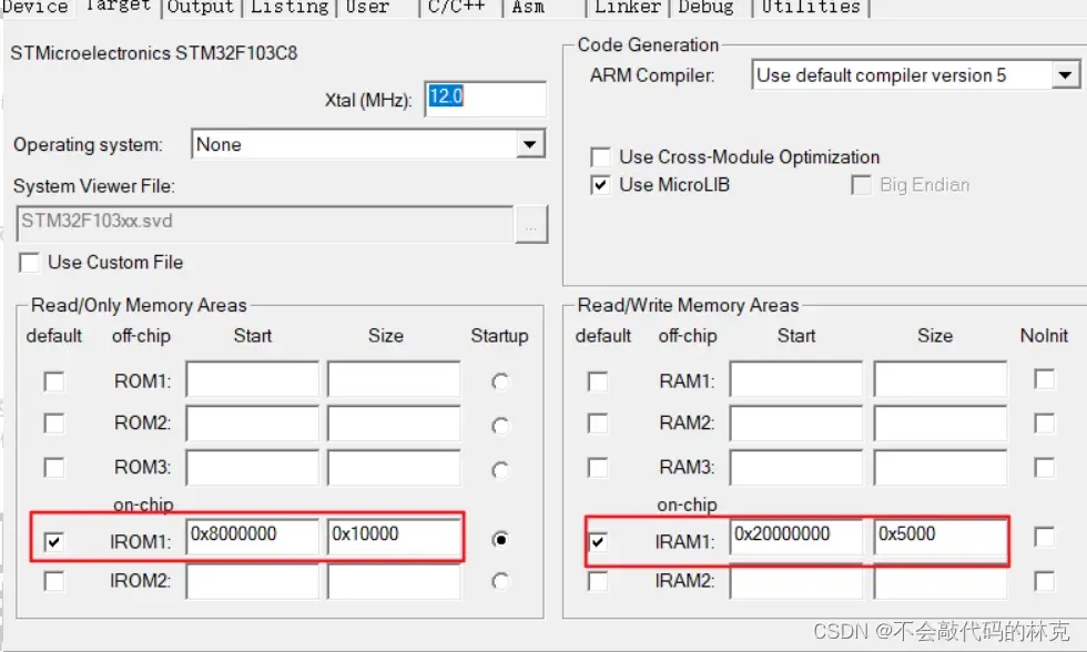 我们在使用外部SRAM的时候需要配置keill5的RAM大小吗,通过图可以发现是不需要的,并且外部ram的起始地址改为0x60000000了。