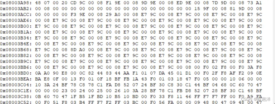 我们在地址处填写想查看的地址,比如查看0x0800 3A98,输入完成后点击回车,就会出现Flash地址对应的内容。