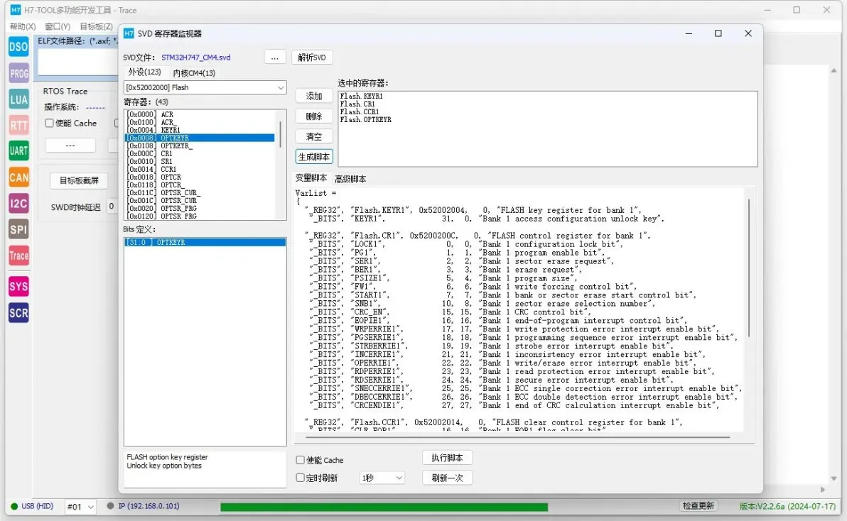 通过TOOL的寄存器检测功能可以了解各种寄存器地址和状态信息,大大方便算法文件自制: