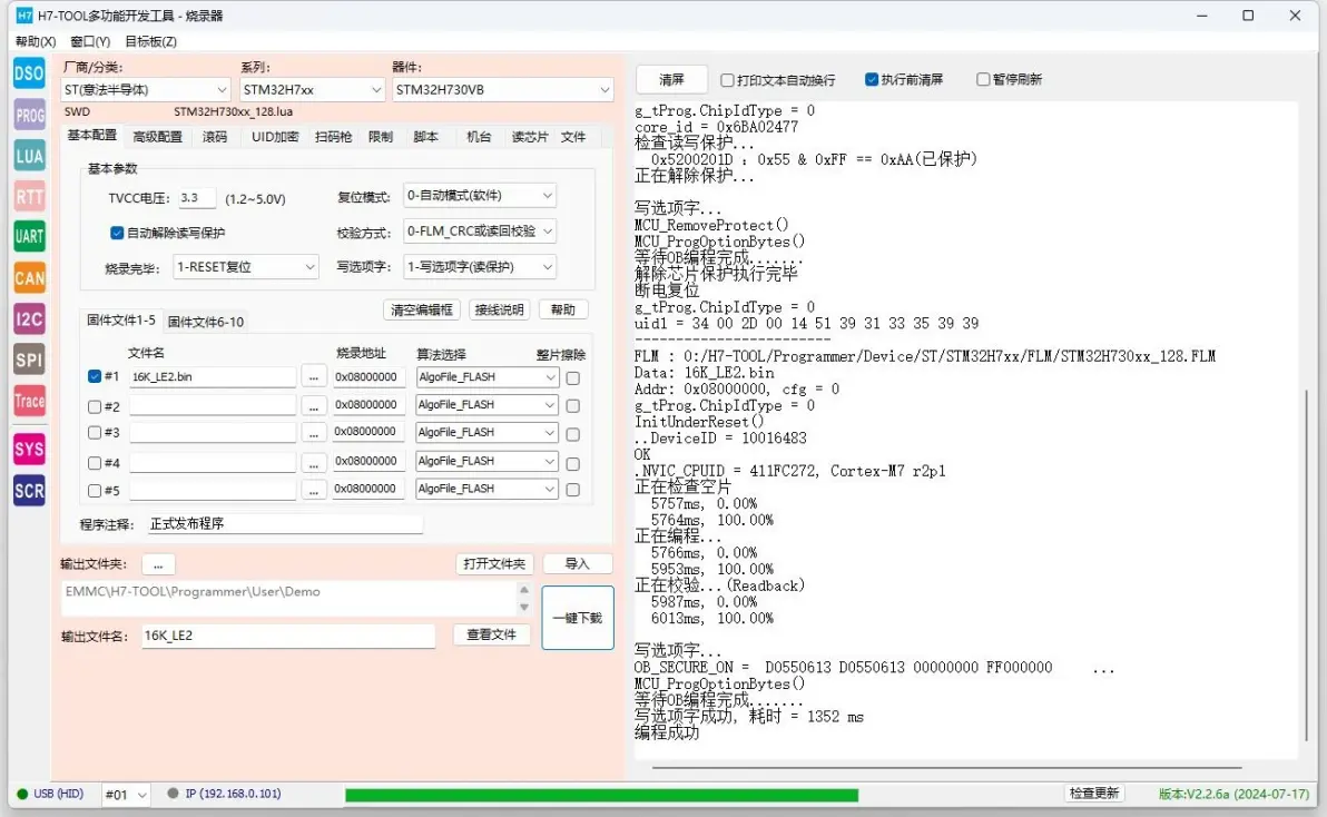 H7-TOOL自制Flash读写保护算法,为STM32H7全系列芯片添加支持,支持在线和脱机烧录