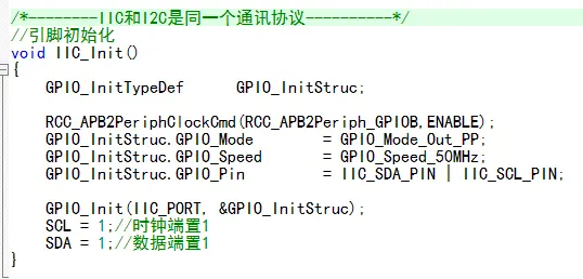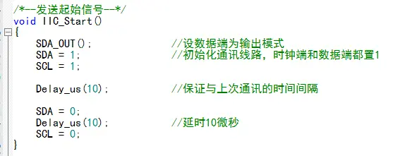 IIC起始信号;SDA置零,等待,SCL置零
