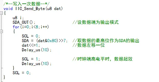 写入一次数据,IIC每次写入的数据长度都是8Bit,写入顺序是从最高位写到最低位。