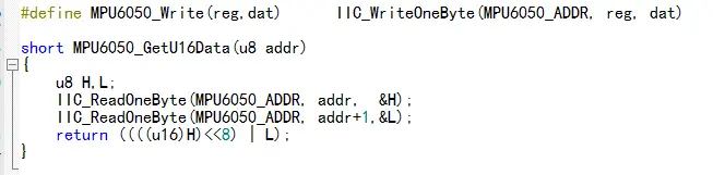 有了这些就可以完成MPU6050的数据读取了,首先是MPU6050写入和读取程序的定义