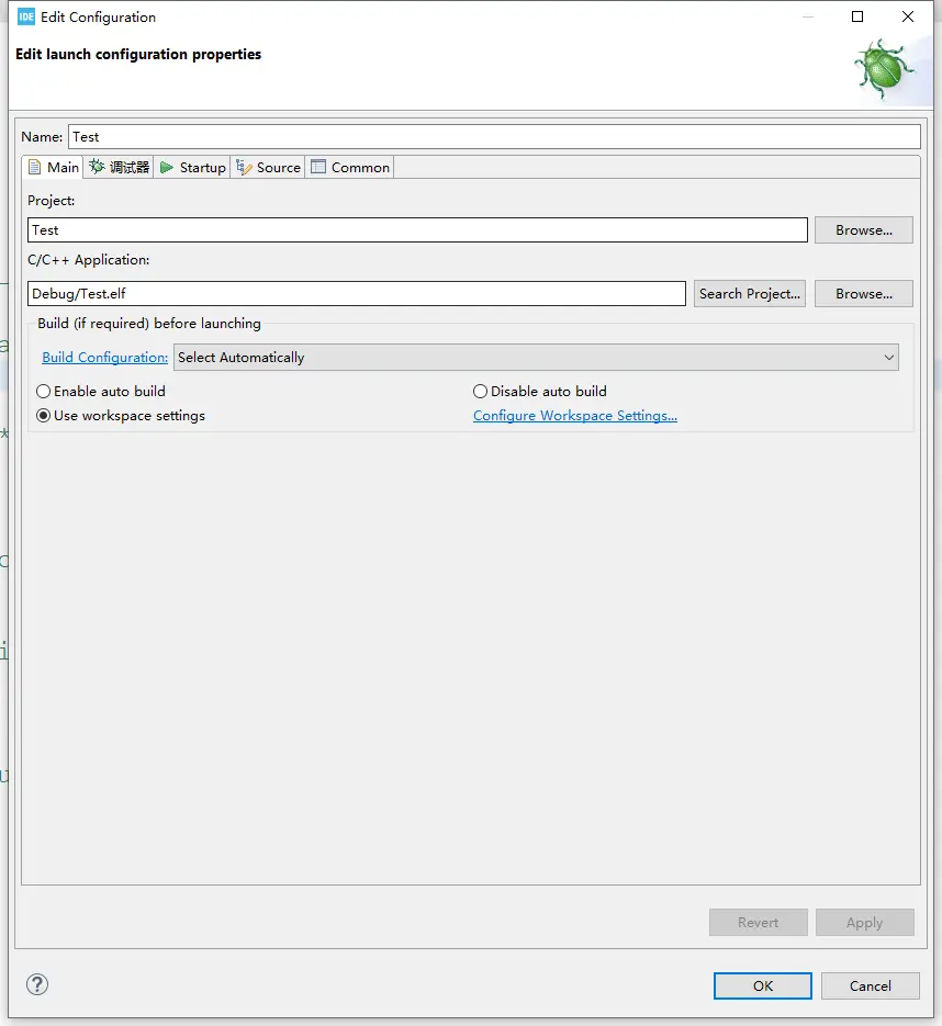 如果该工程是第一次进入调试状态,则会弹出下图所示配置窗口。