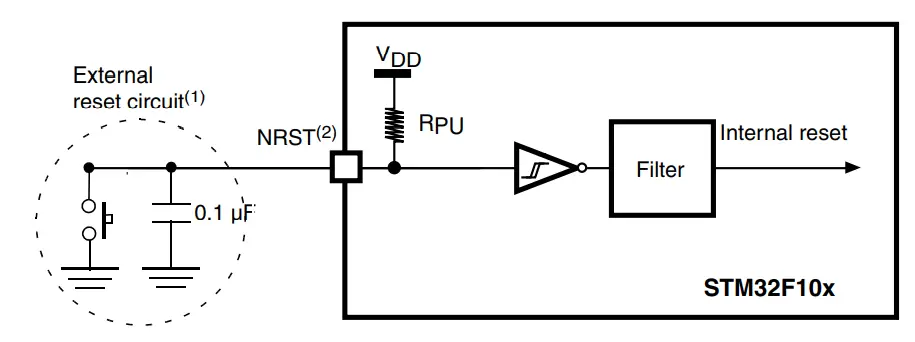 要想了解这些选项,必须先了解NRST异步复位引脚,STM32处理器对外都包含了一个NRST引脚,只要拉低这个引脚,MCU就会处于复位状态,复位外设和内核。而在ST-Link调试器中,对外就包含了一根NRST线,用于连接到目标硬件的NRST操作目标处理器复位。