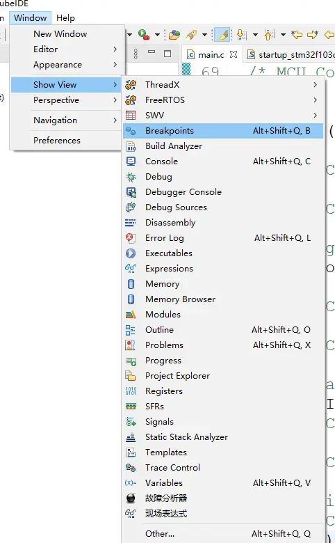 如果找不到上图这个视图界面,可以通过如下图所示的菜单栏打开。