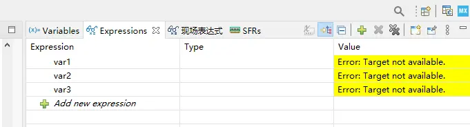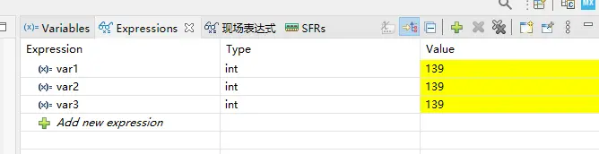此时在右侧Expressions试图也可以看到添加进去的变量。