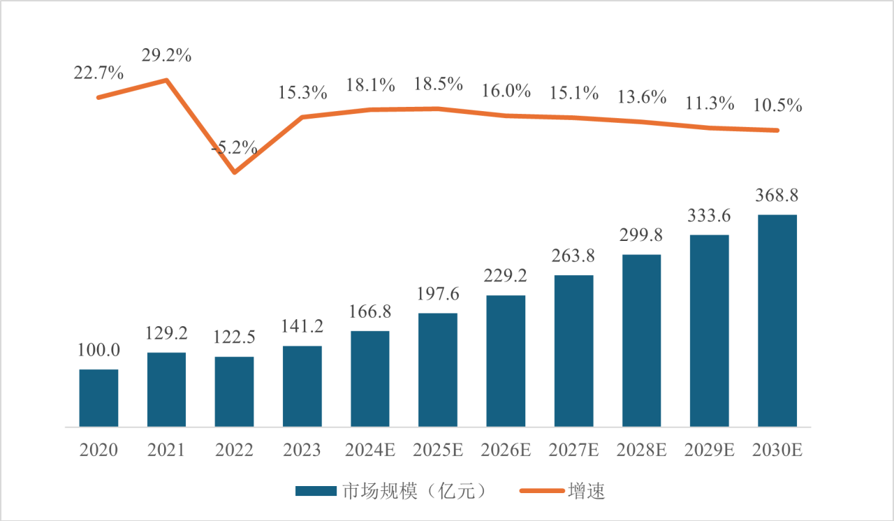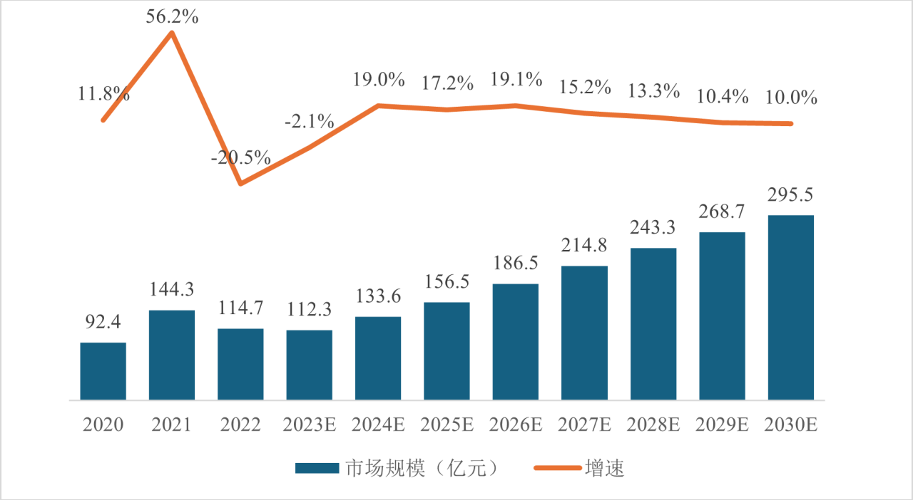 幻彩是LED的新兴领域,通常兼顾照明与显示的效果。近年来,随着LED驱动芯片拥有更强RGB色彩调节、灰度控制和智能控制等能力,可自行编辑控制LED色彩和亮度调解的LED幻彩市场迅速发展,目前已在景观装饰、舞台灯饰、智能家居、室内装饰、汽车氛围灯和透明屏等需要营造特殊氛围的场景广泛应用。根据赛迪顾问估算,2023年中国LED幻彩市场规模141.2亿元,预计到2030年市场规模将接近370亿元。