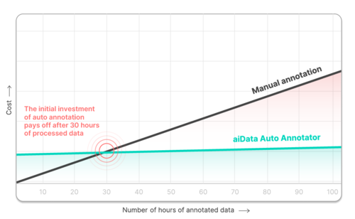 aiData Auto Annotator通过自动化技术实现了标注成本的大幅降低:处理30小时标注录制数据即可实现投资回报(ROI);即便计入传感器、GPU等硬件采购的额外成本,在处理500小时标注数据后,成本节省率可达到90%以上,年度节省预算可达八位数美元。对于典型路测数据采集所需的数万小时数据处理而言,该方案将为整个开发流程带来显著的成本优化。