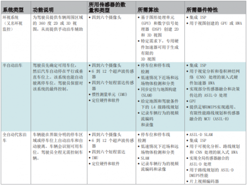 表 1. 环视和自动泊车应用和要求。