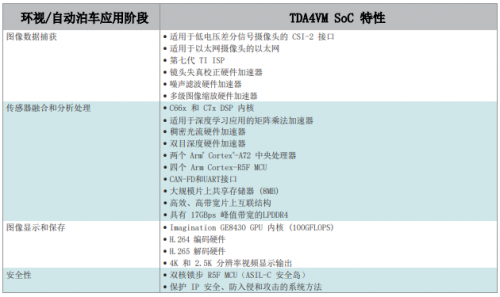 表 3. 环视应用阶段与对应的 TDA4VM 器件特性