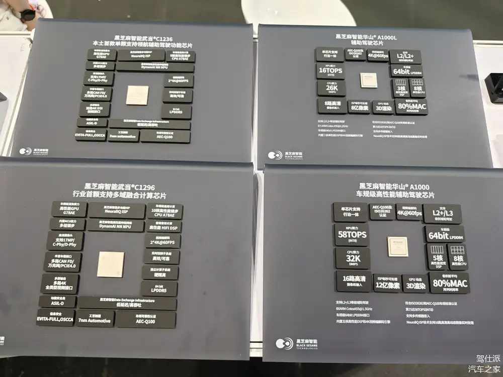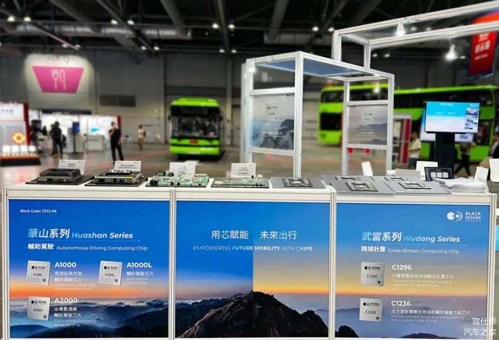 黑芝麻智能也同样是一家港股上市公司,不过展台就显得比较简陋。在这次的香港车博会上,黑芝麻主要展示的是华山A1000芯片和武当C1200芯片,并且提供了一些现有的上车方案。