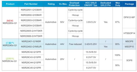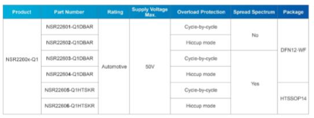 NSR2260x-Q1系列产品选型表
